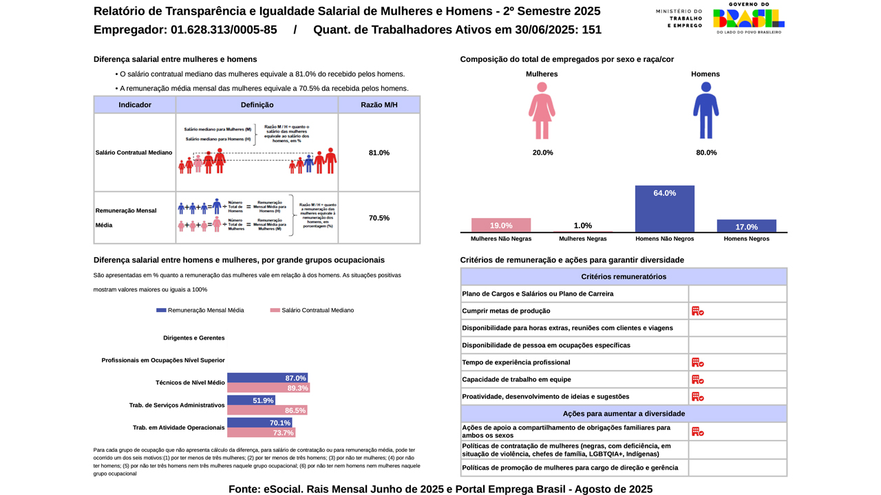 A empresa divulgou seu Relatório de Transparência e Igualdade Salarial, destacando a valorização das pessoas e a equidade como parte essencial da sua cultura organizacional.