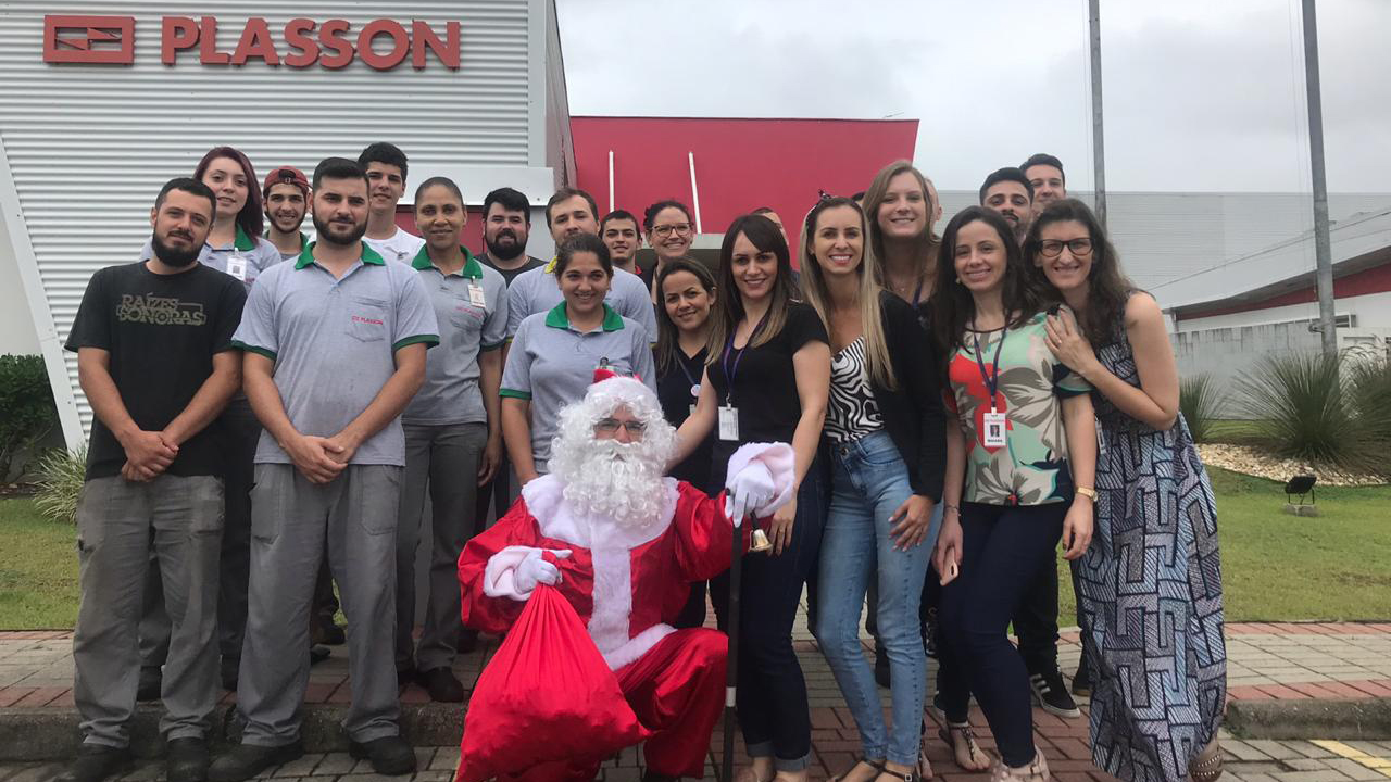 Dia 18 de dezembro, 51 crianças da Linha Batista, receberam presentes doados pelos colaboradores Plasson. Além dos presentes, o Papai-Noel distribuiu bombons e balas para as crianças que se divertiram na cama elástica.