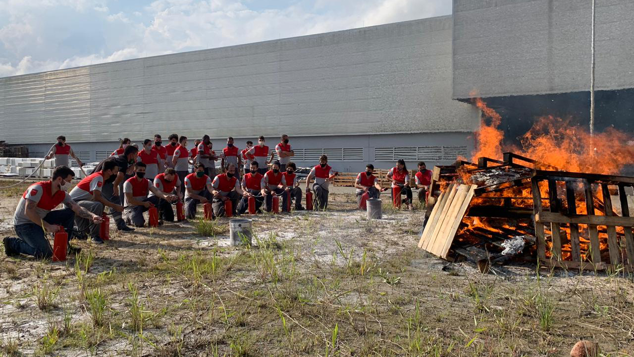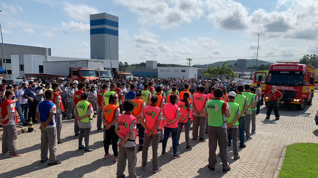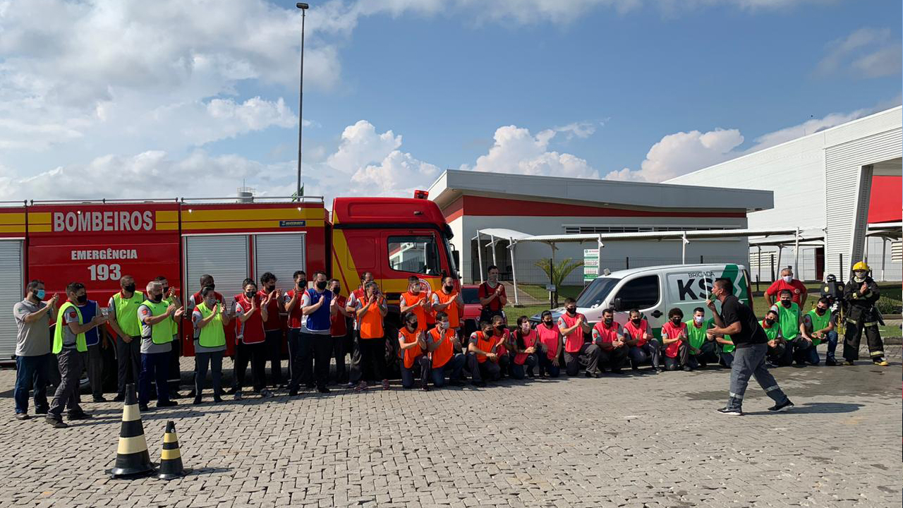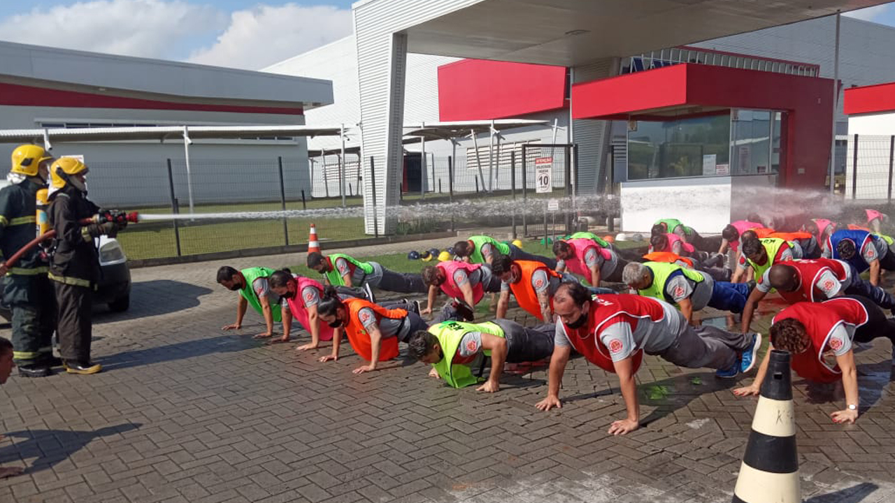 Foi realizado um simulado com apoio do Corpo de Bombeiros, evacuação da empresa e o tradicional banho de mangueira, batizando aos participantes.