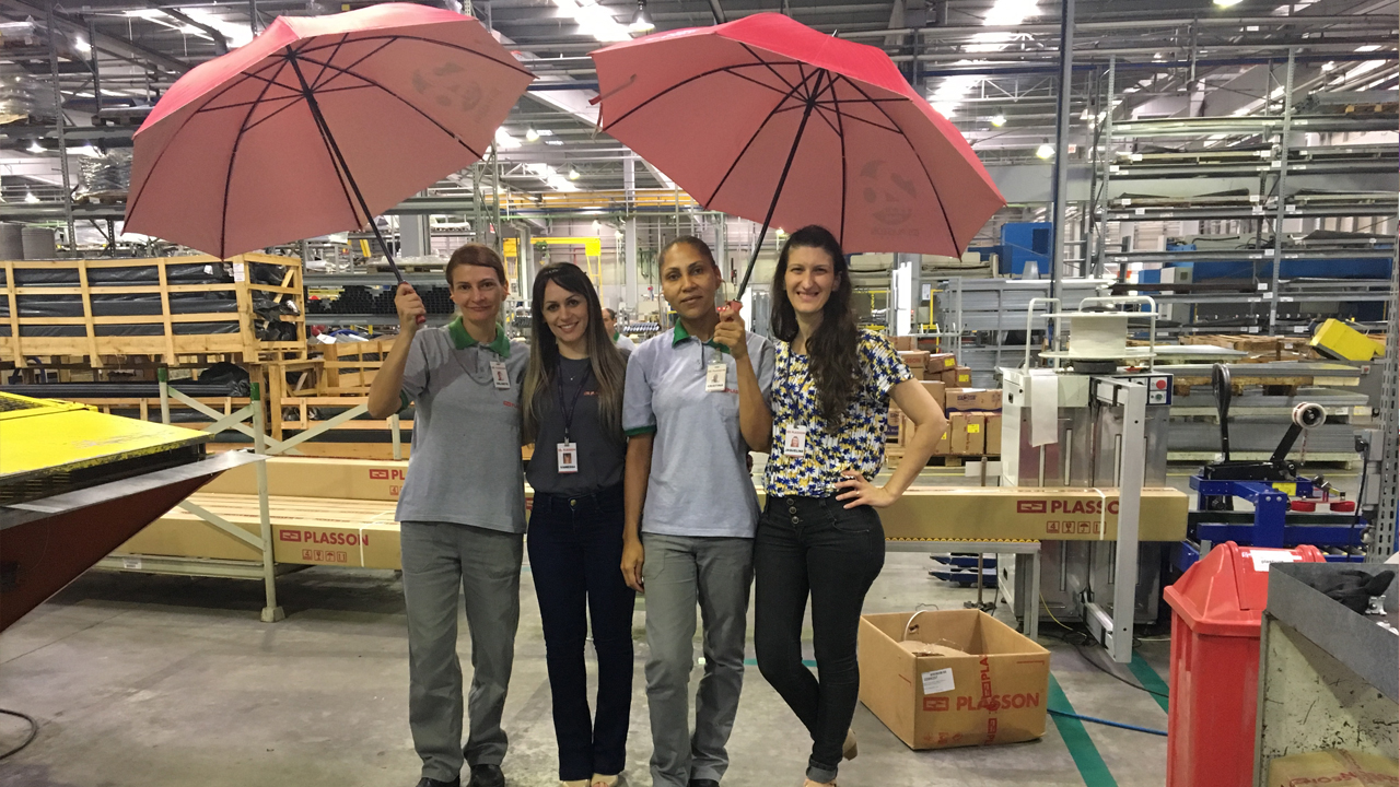 Em homenagem ao Dia Internacional da Mulher a Plasson do Brasil entregou uma linda sombrinha a suas colaboradoras. A todas as mulheres que fazem parte de nosso sucesso e transformam a Plasson em um lugar muito mais belo, parabéns!