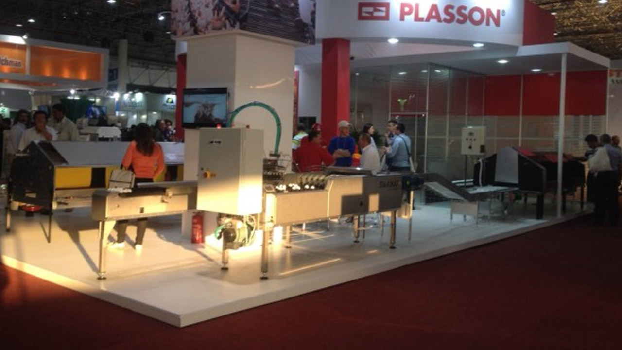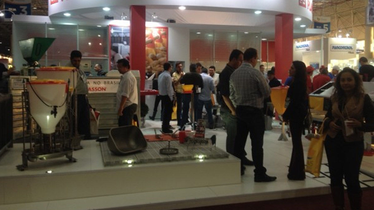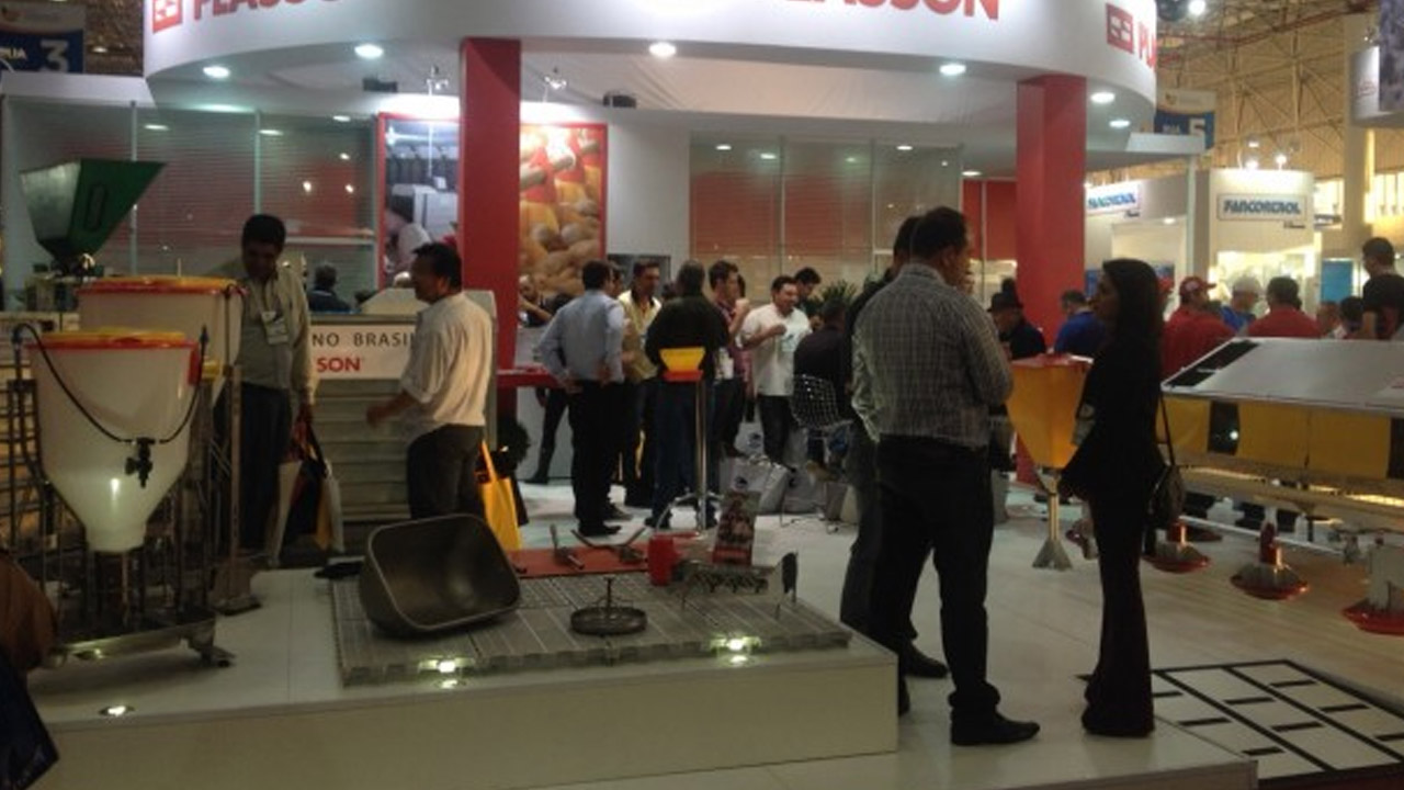 Além dos já conhecidos equipamentos Plasson para alimentação e climatização, podemos citar alguns equipamentos que tiveram destaque: a esteira transportadora de ovos, a embandeijadora de ovos, o ninho Nestomatic e a nossa linha de equipamentos para suínos.