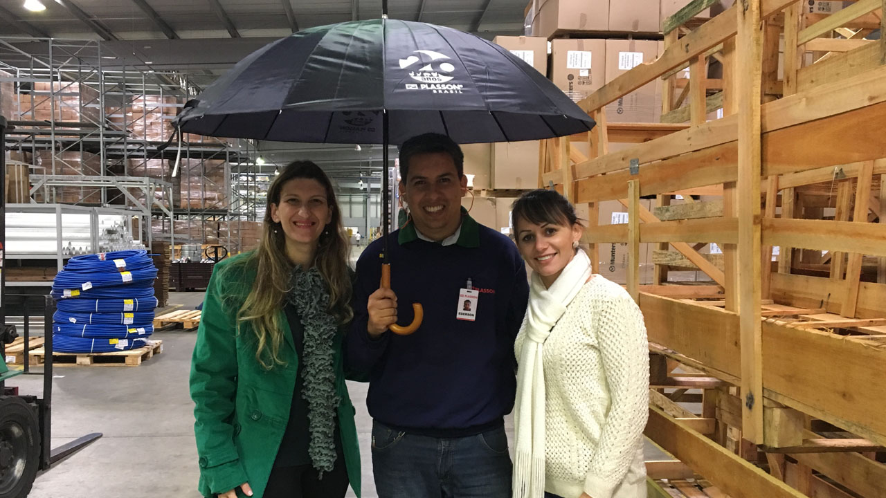 A Plasson presenteia os pais do seu quadro de colaboradores, com belos guarda-chuvas, representando o sentimento de proteção e o carinho insubstituível de um pai. Feliz dia dos pais para todos!