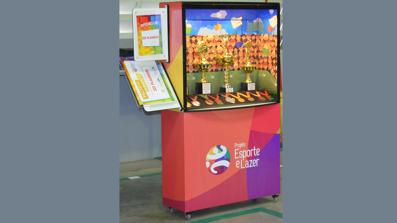 Como forma de agradecimento e prestação de contas do Projeto “Esporte e Lazer Fase 4” no qual a Plasson é apoiadora, o Bairro da Juventude esteve nas dependências da empresa realizando uma exposição itinerante de medalhas e troféus conquistados através das modalidades ofertadas pelo projeto.