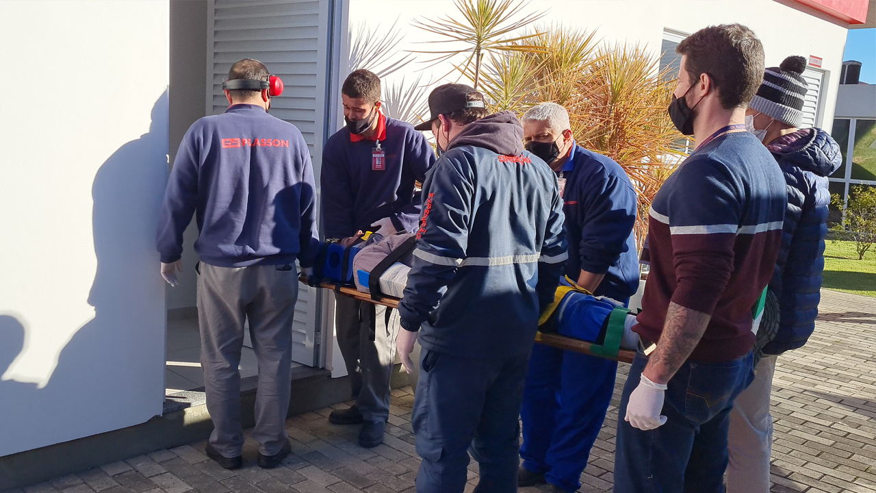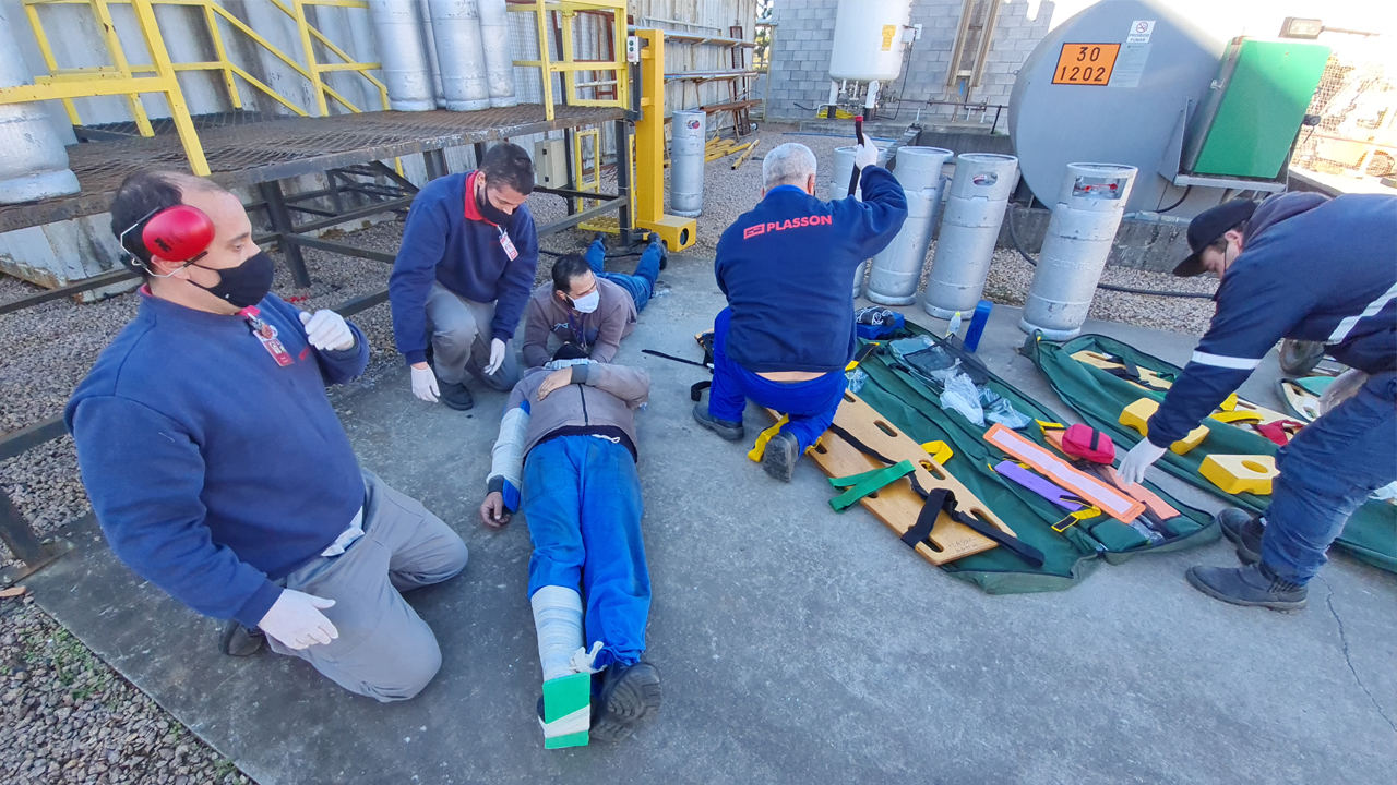 Foi realizado dia 29 de junho na Plasson matriz, um simulado de contenção de vazamento de produtos químicos com atendimento a vítima.