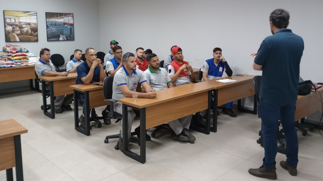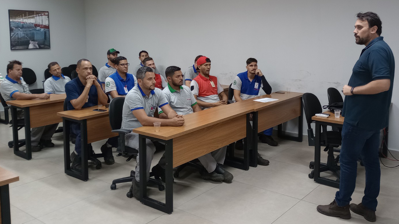 Dia 10/10 realizou-se para os colaboradores do setor de Usinagem e Montagem suínos, treinamento NR-12 (segurança em máquinas e equipamentos) com o Engenheiro Osmar Rodrigues Garcia Jr.