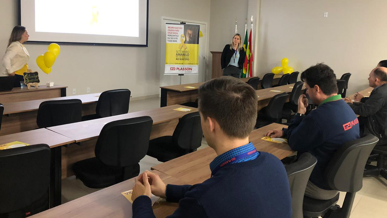 No dia 3 de setembro, a Plasson de Criciúma realizou uma importante palestra para seu colaboradores sobre Setembro Amarelo, mês de prevenção contra o suicídio, ministrada pela enfermeira Sinara Ribeiro Moraes do CAPS II. Em Rinópolis no dia 4, o palestrante foi o Sr. Otávio Menani Ercole.