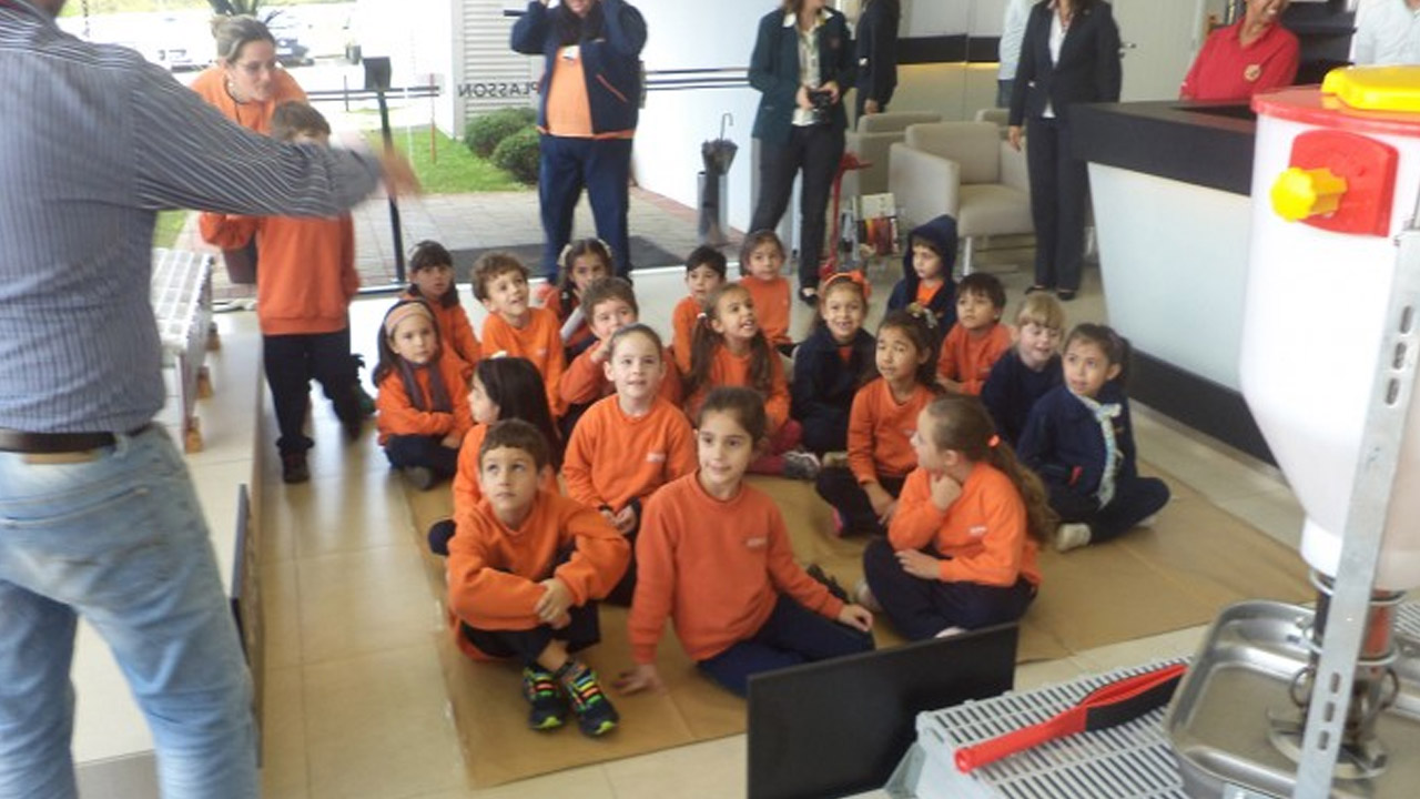 Durante as atividades os alunos foram apresentados aos produtos da empresa, que estavam expostos no showroom e no mini aviário, através de uma divertida história contada pelo colaborador Jeremias Santana – Coordenador Administrativo Técnico, que descreveu como gratificante a experiência de interagir com o atento público infantil.